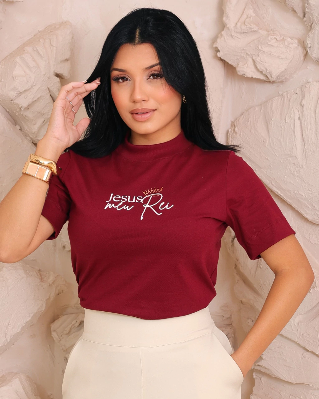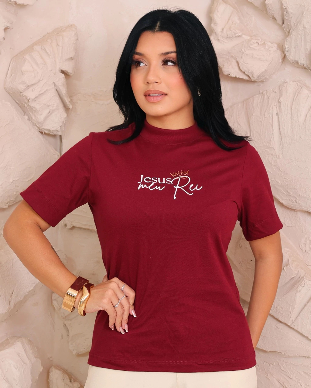 Blusa Gola Alta Jesus, Meu Rei - Marsala