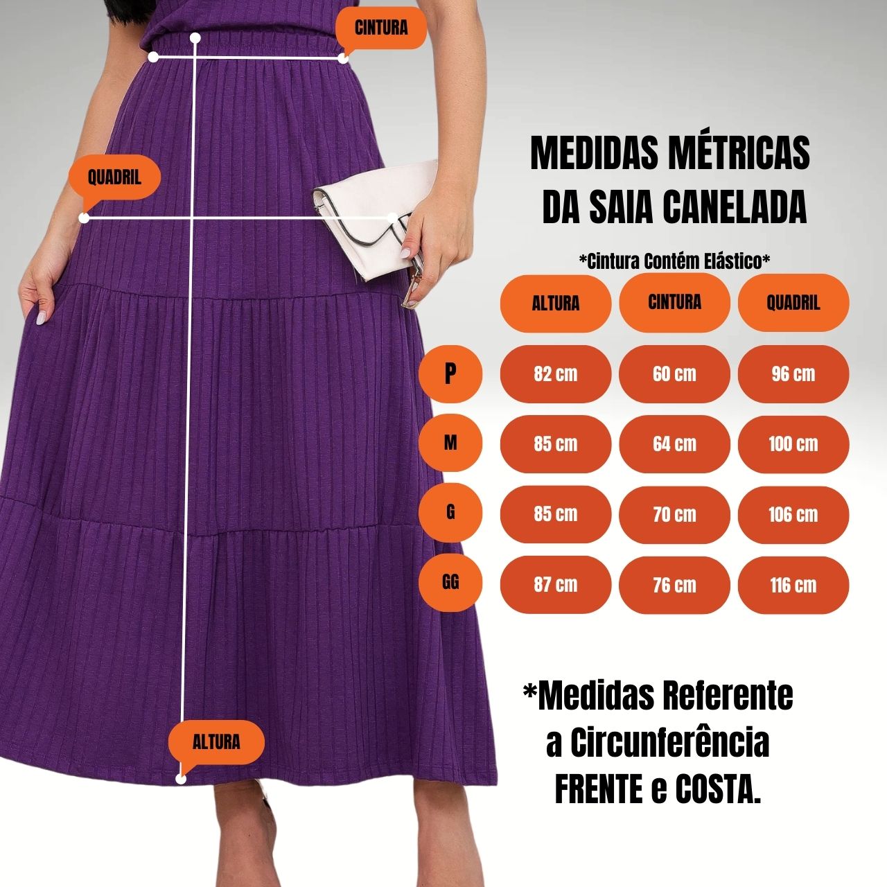 • Saia - 96% Poliéster 04% Elastano que estica bem.